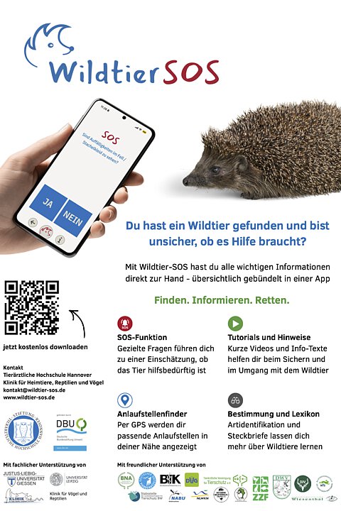Bitte vergewissern Sie sich, dass das von Ihnen gefundene Wildtier auch wirklich hilfebedürftig ist. Die wenigsten Wildtiere benötigen menschliche Unterstützung! Ersten Rat erhalten Sie unter unserer Notrufnummer. Tatsächlich verletzte Wildtiere können Sie in der Dienststelle der aktion tier tierrettung münchen e.V. in der Herzogstraße 127, 80796 München, nach vorheriger telefonischer Anmeldung über die Notrufnummer abgeben werden. Sollten wir einmal in einem Einsatz sein und nicht ans Telefon gehen können, wenden Sie sich bei lebensbedrohlich verletzten Tieren bitte unverzüglich an eine Tierklinik.