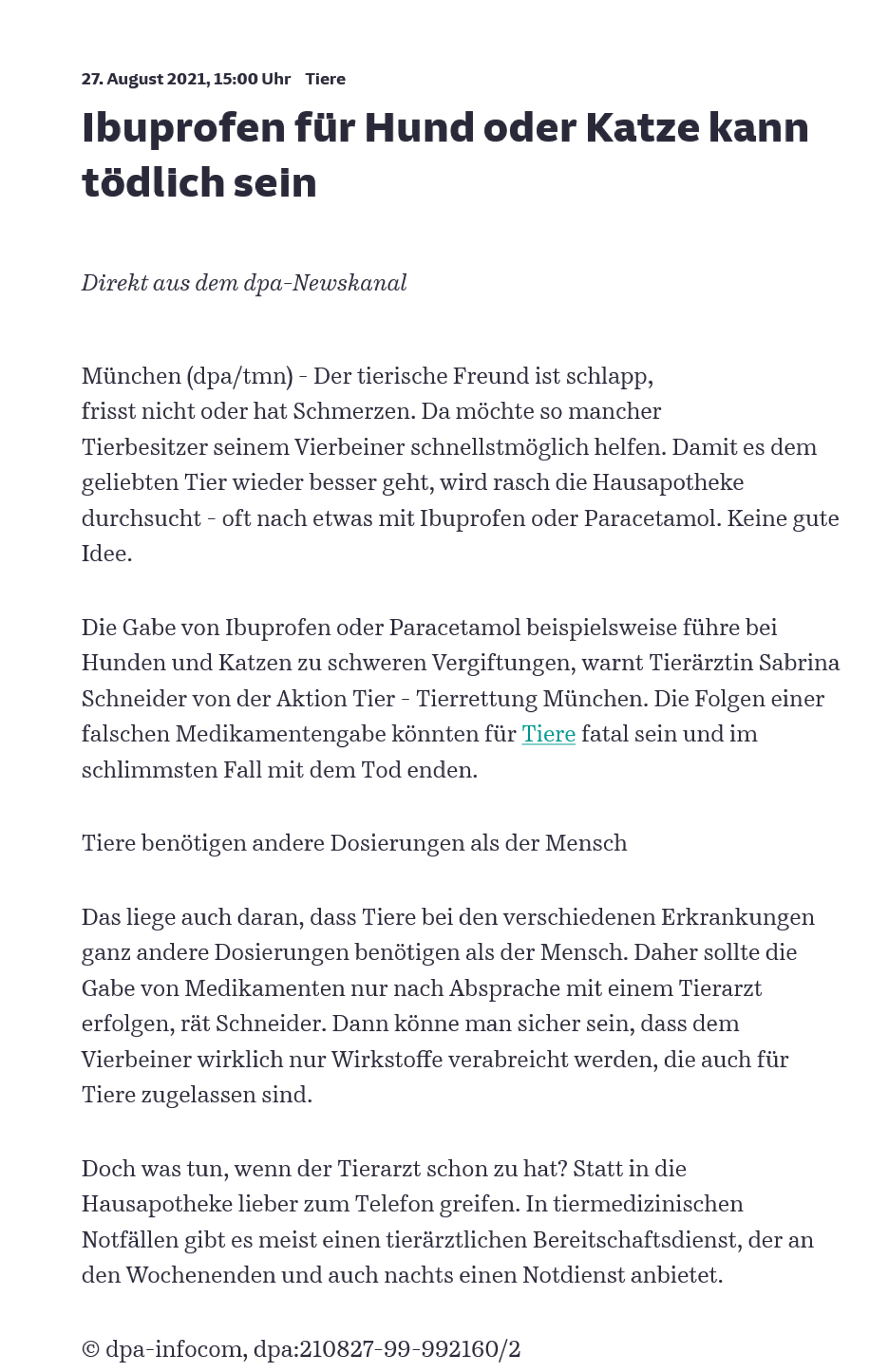 Notruftelefon: 01805 TIERRE 01805 84 3773* * 0,14 Euro/Min aus dem dt. Festnetz, max. 0,42 Euro/Min aus dem Mobilfunknetz