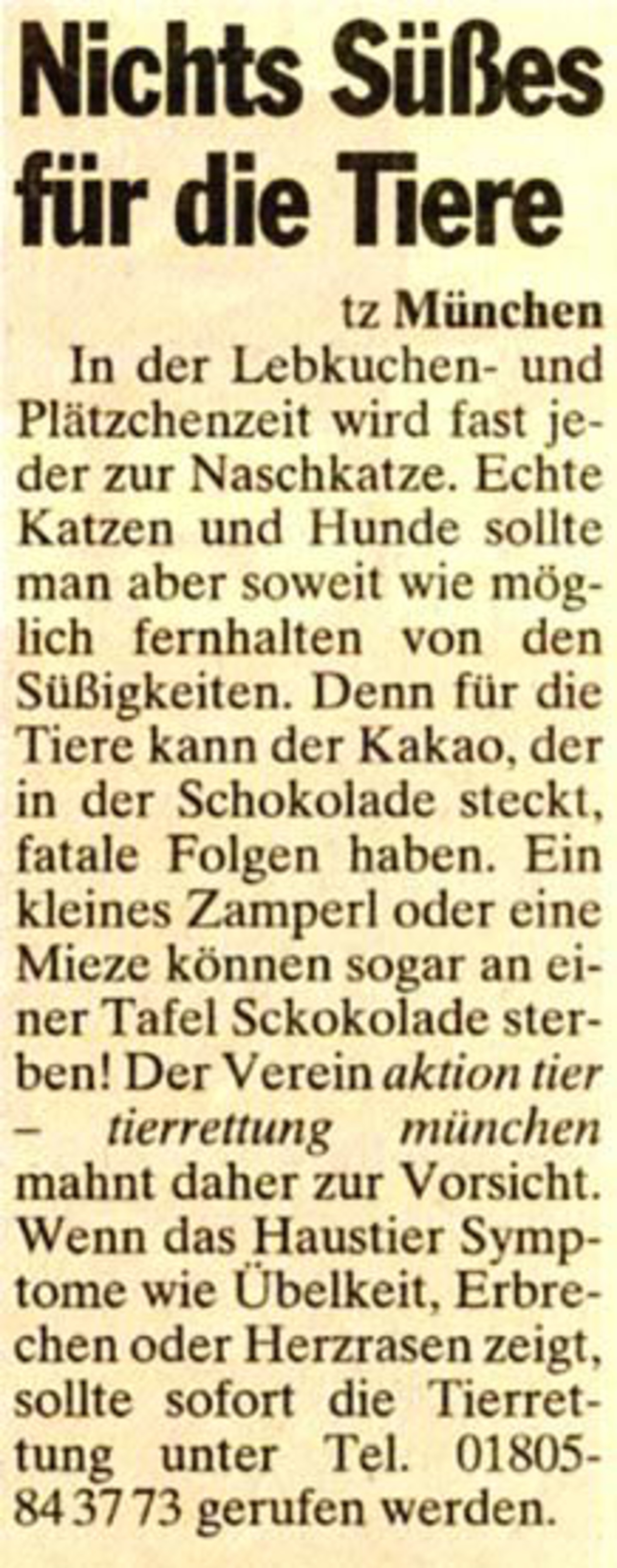 Notruftelefon: 01805 TIERRE 01805 84 3773* * 0,14 Euro/Min aus dem dt. Festnetz, max. 0,42 Euro/Min aus dem Mobilfunknetz