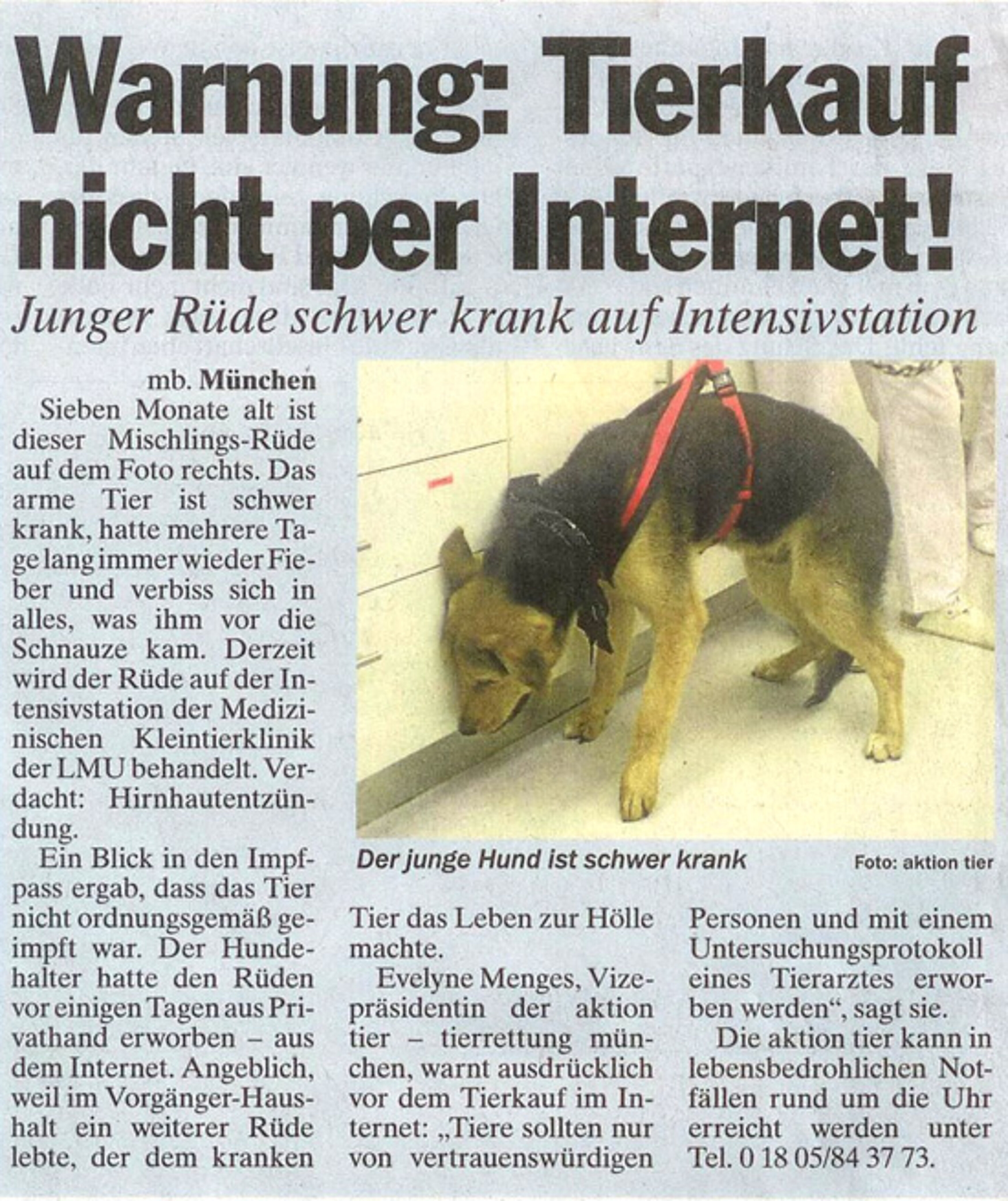Notruftelefon: 01805 TIERRE 01805 84 3773* * 0,14 Euro/Min aus dem dt. Festnetz, max. 0,42 Euro/Min aus dem Mobilfunknetz