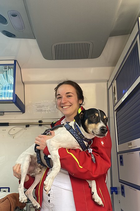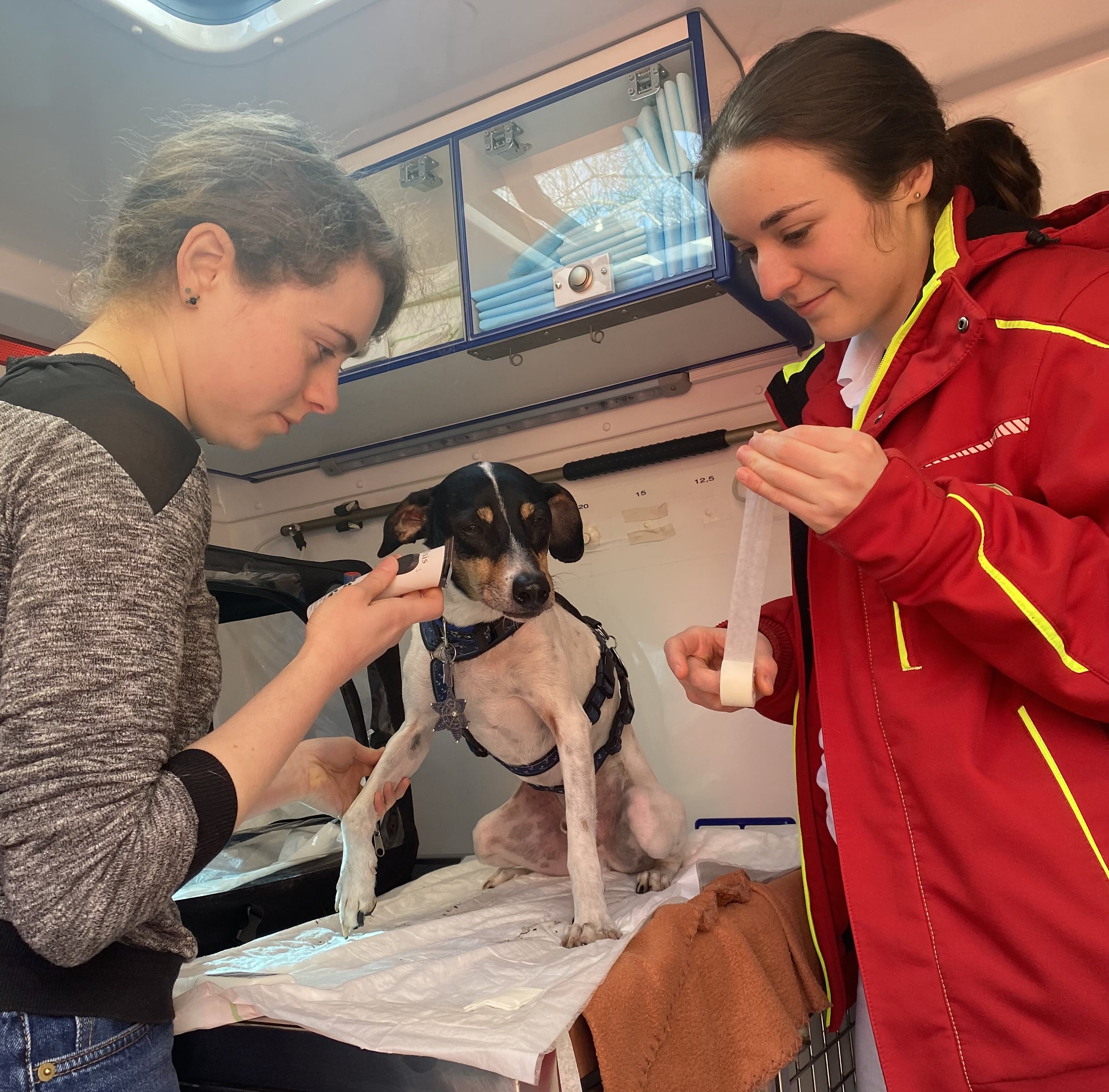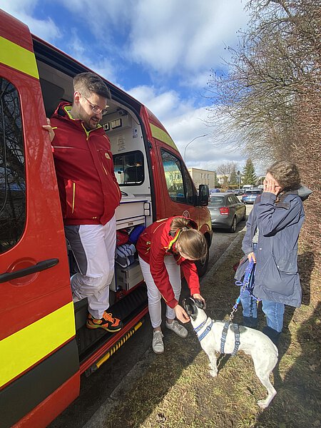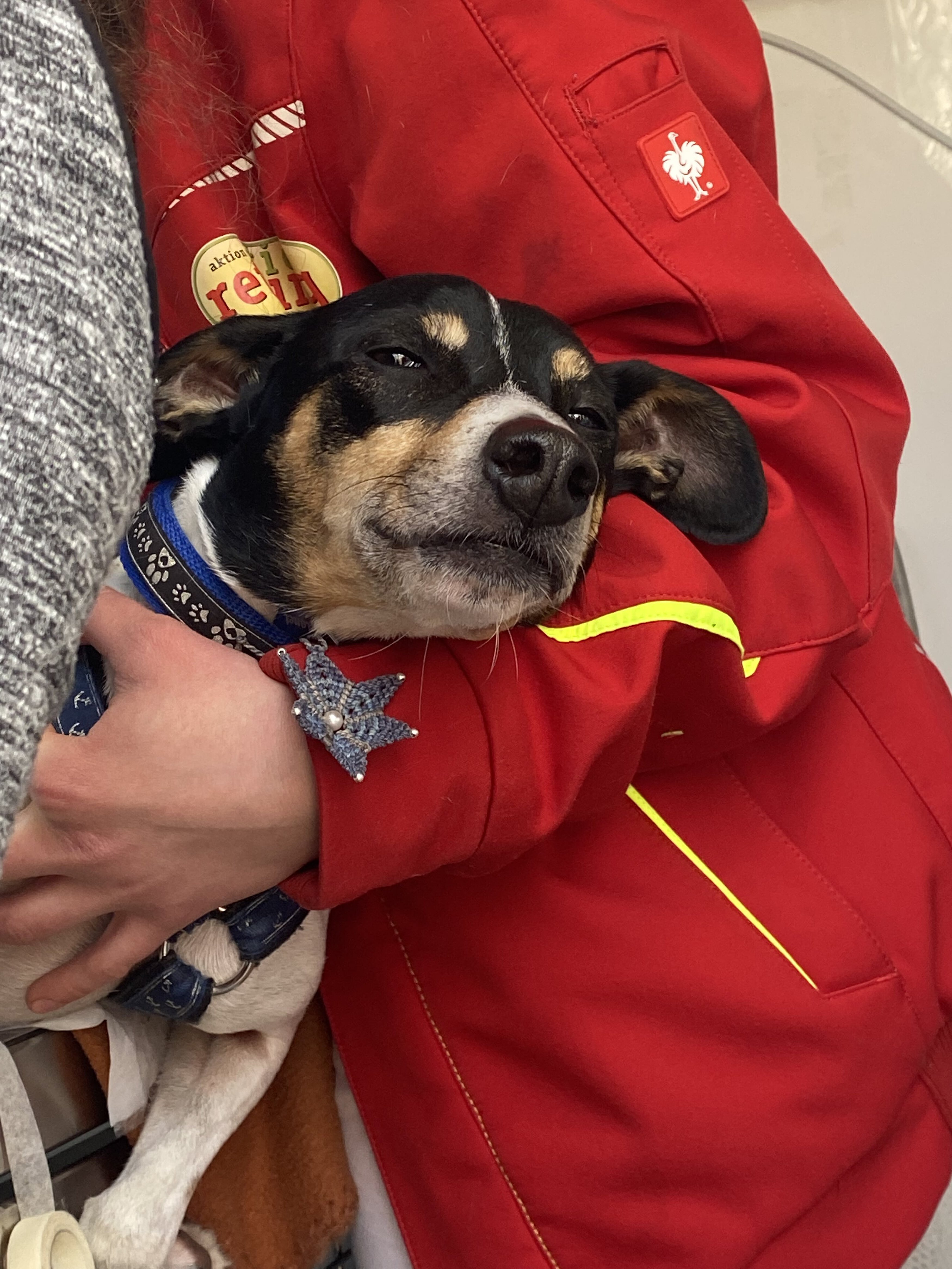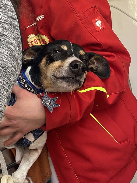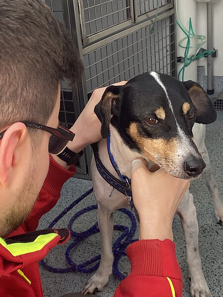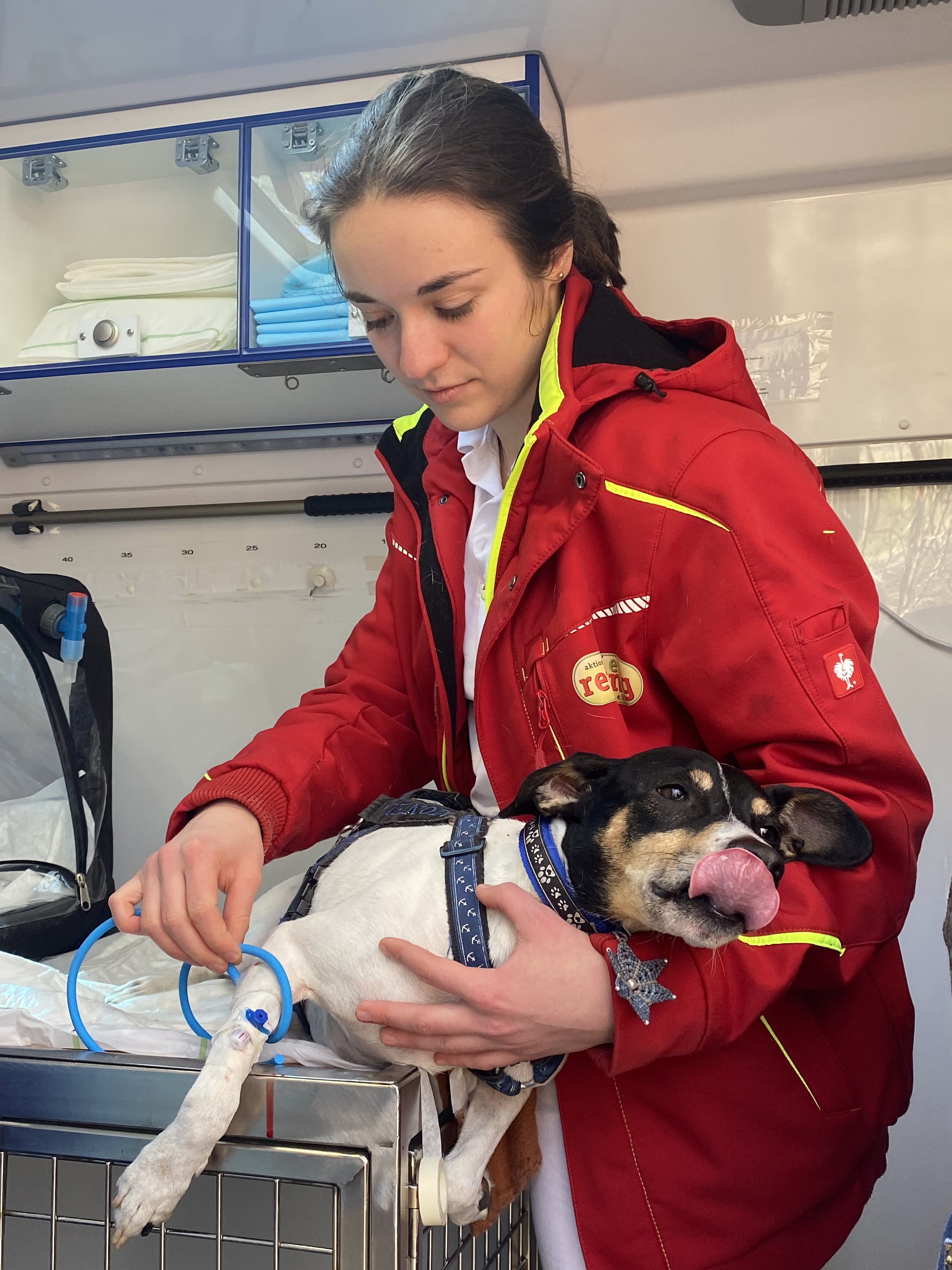 An einem sonnigen Wochenende im Februar war ich bei der Tierrettung München, um mal wieder über die Arbeit zu berichten – bei drei Hunde-Einsätzen durfte ich dabei sein. Der dritte Einsatz fand am sonnigen Mittag beim Hund Monee statt: Dieser süße Hund aus dem Tierschutz (er schmückte bereite das Titelbild von der TIERPOST 1/2023) war wohl ein wenig „verfressen“. Sein Frauchen rief bei der Tierrettung München an, denn ihr Hund hatte wohl alles gefressen, was er finden konnte, von Schokolade, Kerzen bis zu viel Hundefutter, und ihm war nun “kotzübel“. Tierarzt Maarten Mohnke und Assistentin Viola Gumbert gaben ihm eine Spritze, damit er sich „übergeben“ sollte. Es war erstaunlich, was aus diesem schlanken Hund dann alles herauskam! Er durfte an den Tropf und sich erholen!