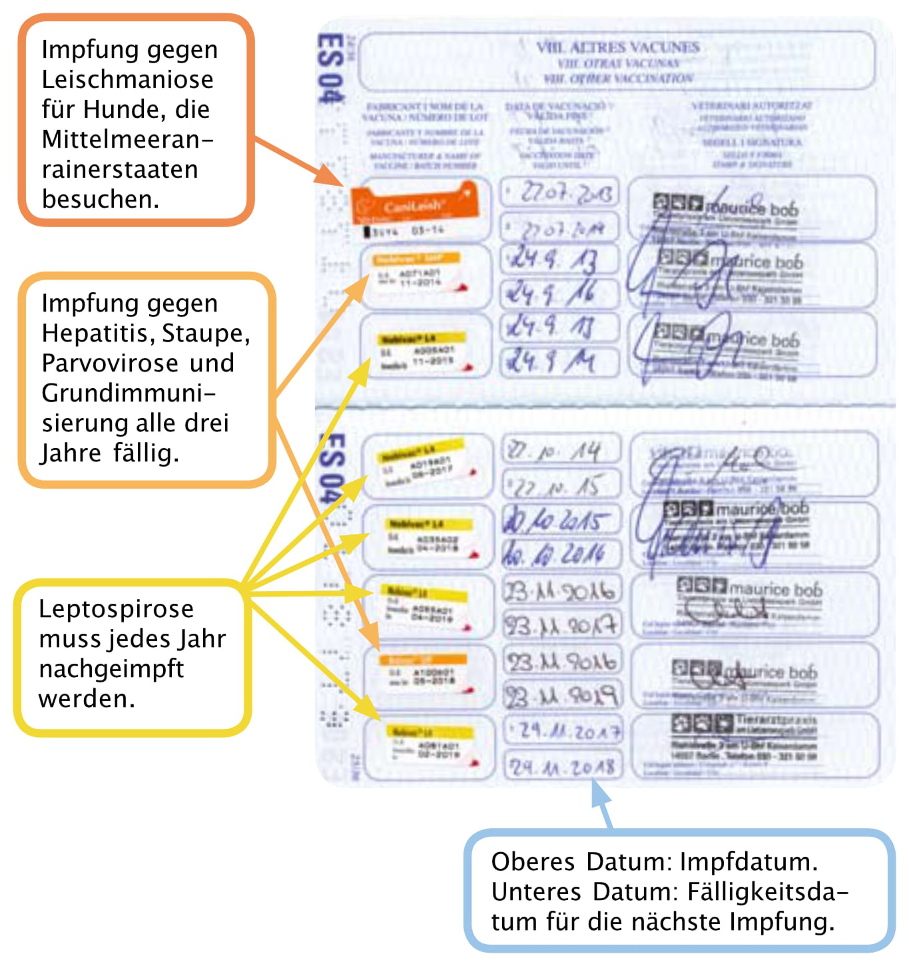 - Leptospirose: Erste Impfung ab der 8. Woche, zweite nach 4 Wochen. Danach jährliche Auffrischung.