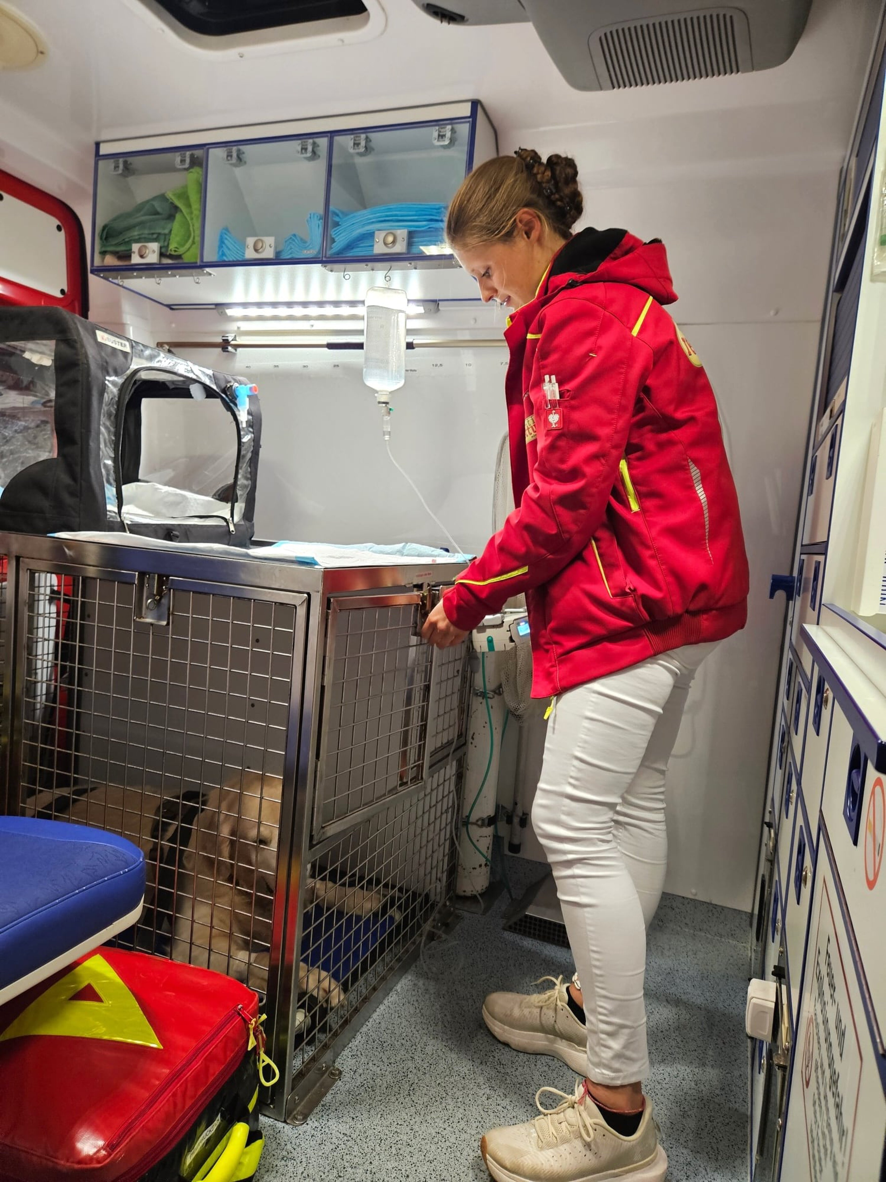 In der klinischen Untersuchung vor Ort konnten wir erkennen, dass Jimmy hinten immer wieder wegknickte, mit dem Kopf wackelte und ihn schief hielt. Außerdem fiel eine unphysiologische Augenbewegung auf. Dies nennt man Nystagmus – eine entweder horizontale oder vertikale, unphysiologisch schnelle Augenbewegung. Zudem war er zeitweise nicht stehoder gehfähig. Seine restlichen Vitalparameter wie Herzfrequenz, Puls, Temperatur und Schleimhautfarbe waren jedoch in Ordnung.
