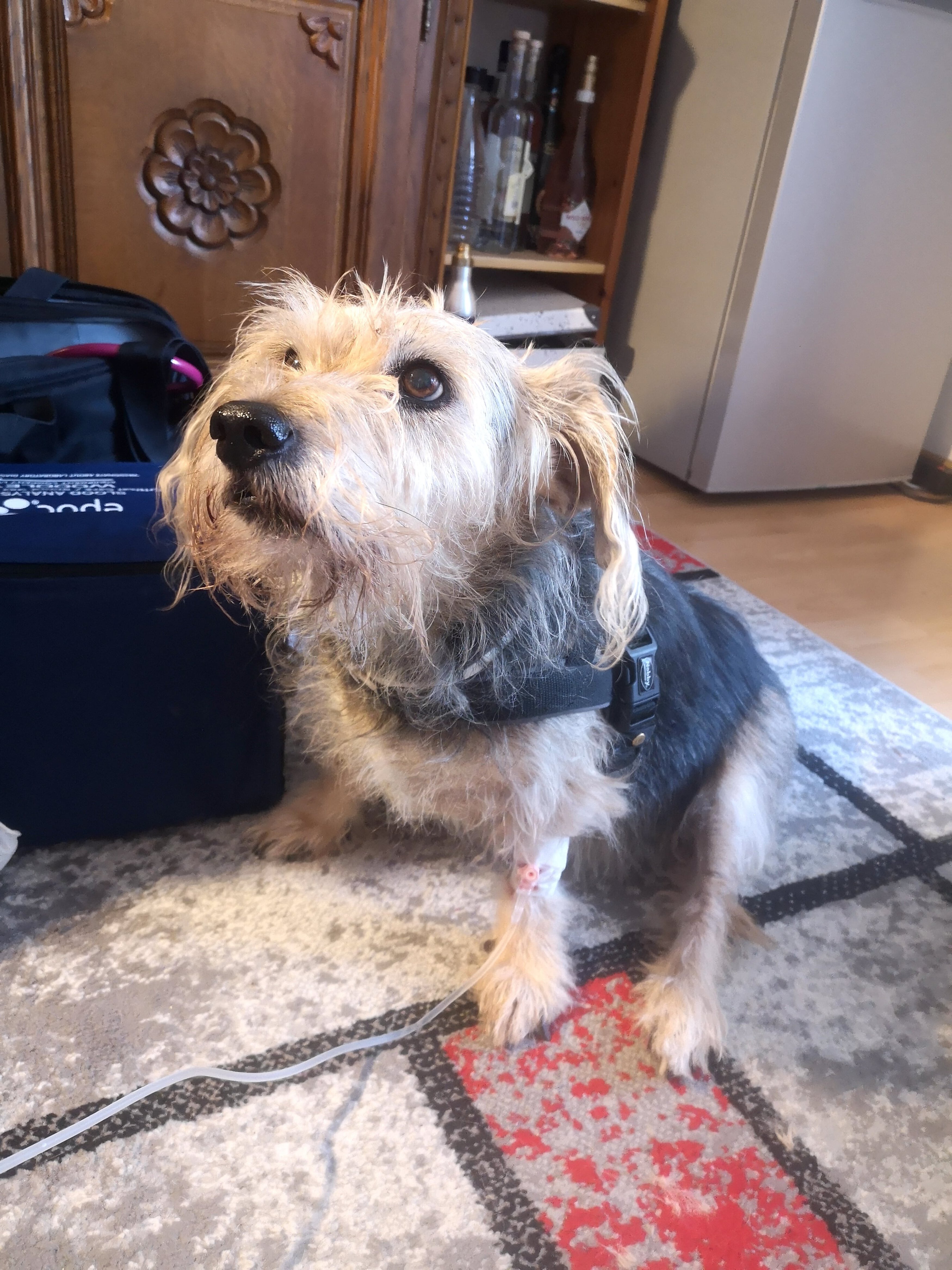 Am Samstagmorgen erhielten wir einen Anruf von „Strolchi´s“ Besitzerin, die sehr besorgt um ihren 14-jährigen Hund war. Der kleine Rüde hatte seit heute Schwierigkeiten beim Laufen, schwankte hin und her und grätschte mit seinen Hinterbeinen immer wieder auseinander. Außerdem hatte er sich mehrmals erbrochen und wollte nicht mehr fressen.