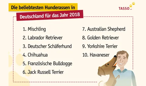 Mehr als 87.000 Mischlinge sind von Januar bis Dezember 2018 bei TASSO neu registriert worden. Damit ist Platz eins unangefochten in der Hand der Rassemixe.