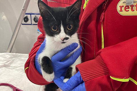 In unserem aktuellen Fall drehten wir also um und fuhren zu der Babykatze. Untersucht wurde sie im Auto. Glücklicherweise hatte sich ihr Zustand laut der Besitzerin mittlerweile gebessert. Es konnte lediglich eine Lahmheit der linken Vordergliedmaße festgestellt werden und ein etwas praller Bauch. Aufgrund des Sturzes im Treppenhaus von dem 3.Stock bis in das Erdgeschoss wurde trotzdem zu einer Kontrolluntersuchung in der Tierklinik geraten, da innere Verletzungen nicht hundertprozentig ohne weitere Diagnostik ausgeschlossen werden konnten. Auch die Pfote der jungen Katze könnte dort nochmal untersucht werden. Wir brachten daher im Anschluss die aufgelöste und besorgte Besitzerin zusammen mit ihrer Katze in die Tierklinik. Am nächsten Tag erfuhren wir, dass das Babykätzchen glücklicherweise keine schwerwiegenden Verletzungen von dem Sturz erlitten hat und schon am Vortag wieder mit der Besitzerin zusammen nach Hause durften. Dort war sie etwas vorsichtiger unterwegs als sonst, aber immerhin munter.