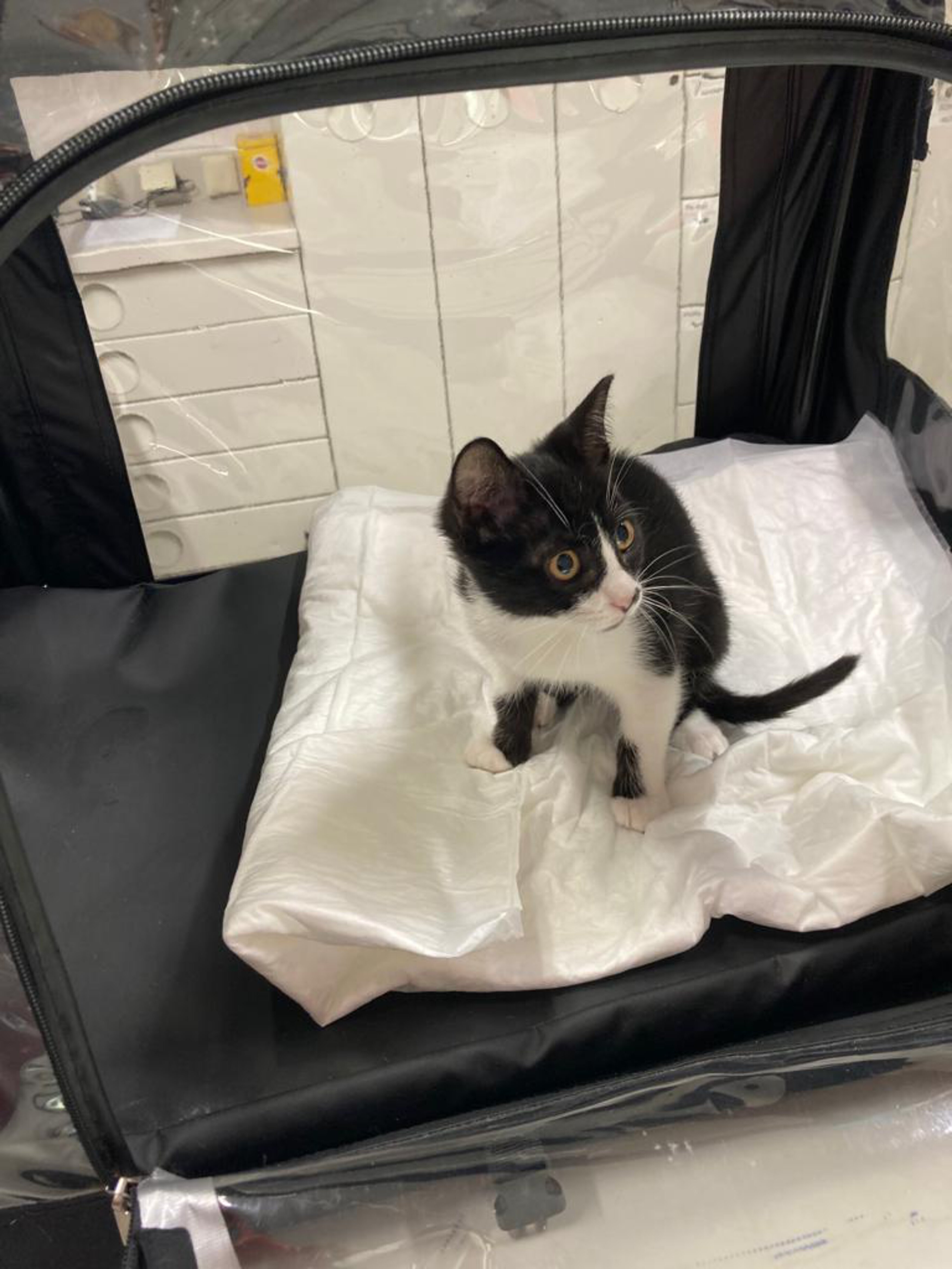 Als wir gerade auf den Weg zu einer kranken Katze waren, ereilte uns ein Notruf, dass eine kleine Katze aus dem 3. Stock gefallen sei und es ihr nicht gut gehe. Die geschilderte Situation wurde am Telefon als schwerwiegender eingestuft als der ursprüngliche Einsatz, weshalb dieser vorgezogen wurde.