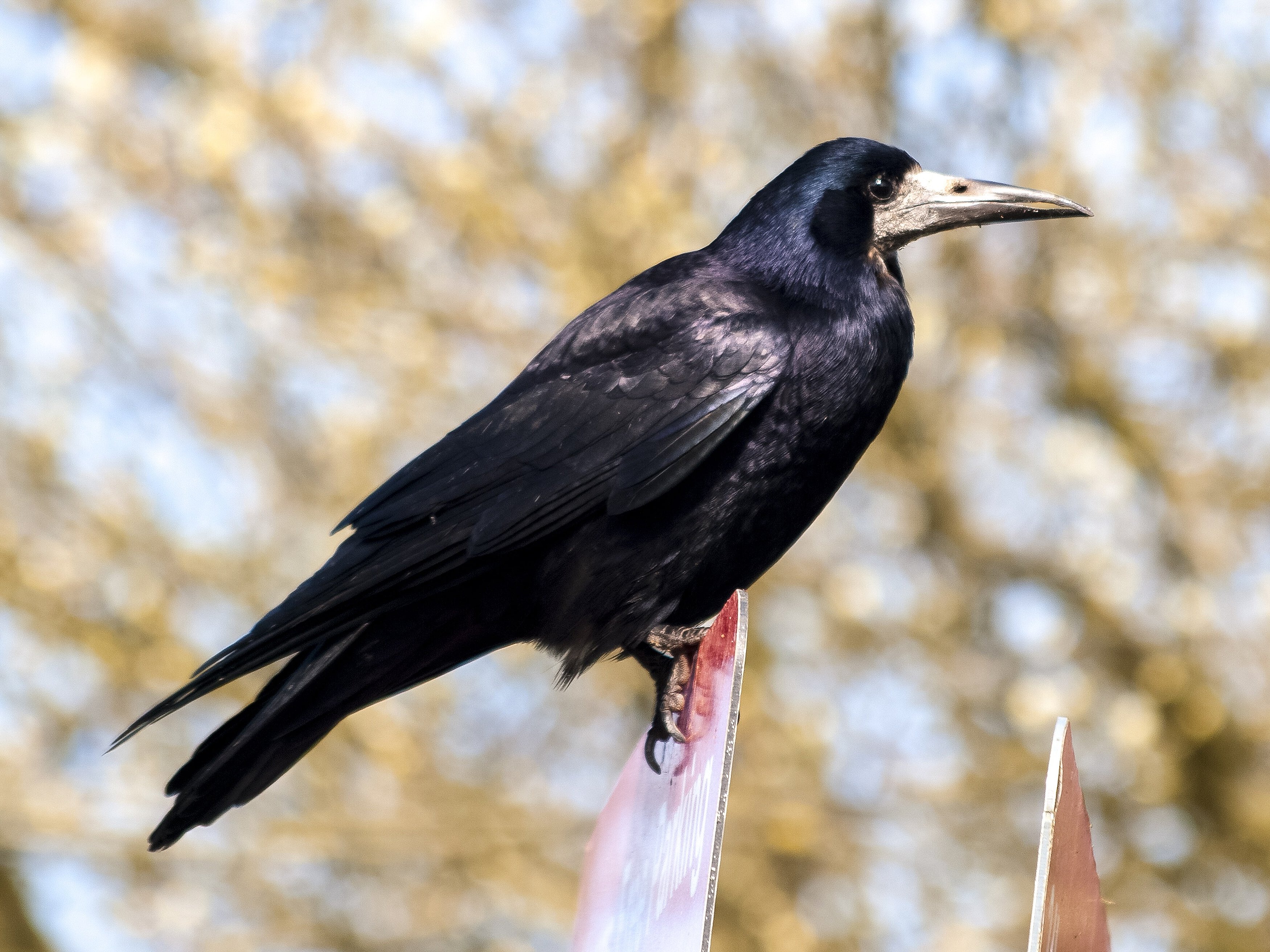 - Die Saatkrähe hat auch ein rein schwarzes Gefieder und einen ganz spitzen Schnabel, der grauweiß eingefärbt ist. Am besten erkennt man die Saatkrähe am auffällig abgerundeten Schwanz.