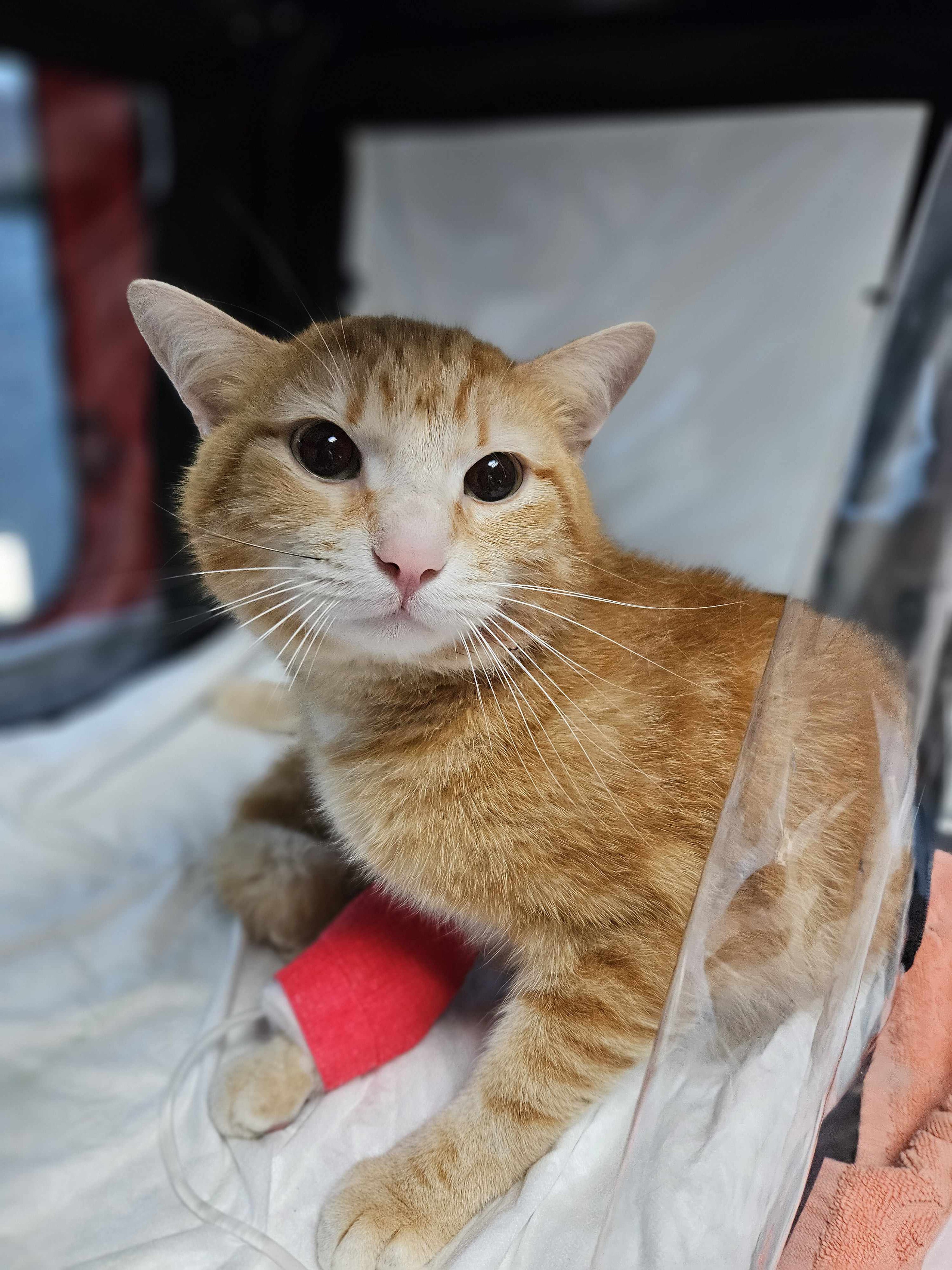 Hinweise auf starke innere Verletzungen konnten anhand der Erstuntersuchung zum Glück nicht festgestellt werden. Dennoch war klar, dass Molly zur weiteren Behandlung stationär betreut werden muss und auch weitere Diagnostik notwendig war, um mögliche Folgeschäden auszuschließen. Zu den Maßnahmen vor Ort gehörten die Stabilisierung durch das Legen eines Venenkatheters, eine Infusion sowie die Gabe eines starken Schmerzmittels. Molly wurde nach der Erstversorgung von der Tierrettung München in die Tierklinik gebracht, wo er weiter betreut wurde. Inzwischen konnte auch seine Besitzerin, die zu dem Zeitpunkt im Urlaub war, erreicht werden. Sie zeigte sich sehr erleichtert und dankbar, dass ihrem Kater geholfen wurde – und dass Nachbarn und Tierrettung so schnell gehandelt haben. Kater Molly ist auf dem Weg der Besserung. Er frisst, ist stabil und kann selbstständig und kontrolliert Urin absetzen – ein wichtiges Zeichen für funktionierende Nervenbahnen. Zwar zeigte Molly noch Lahmheit und Schmerzen der Hintergliedmaße, doch die Prognose ist positiv und die Hoffnung groß, dass er sich vollständig erholen wird.