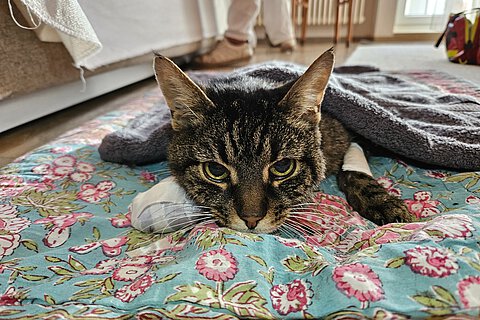 Kater Igor ist mit seinen 16 Jahren ein echter Charakterkopf, der Tierarztbesuche und Fixierungen strikt ablehnt. Eine regelmäßige Krallenpflege war für seine Besitzerin daher kaum möglich. Erst als Igor eines Tages blutige Spuren in der Wohnung hinterließ, wurde sie auf das Problem aufmerksam und rief besorgt die Tierrettung München – eine gute Entscheidung, denn unbehandelt hätte die Verletzung ernste Folgen haben können.