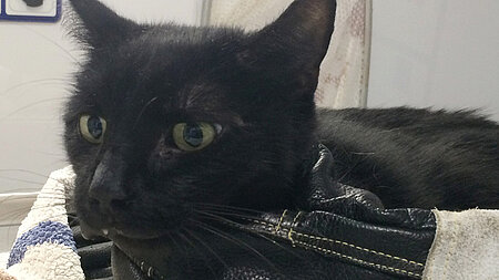 Gechipt, aber nicht registriert! Ein schwarzer Kater von links ...