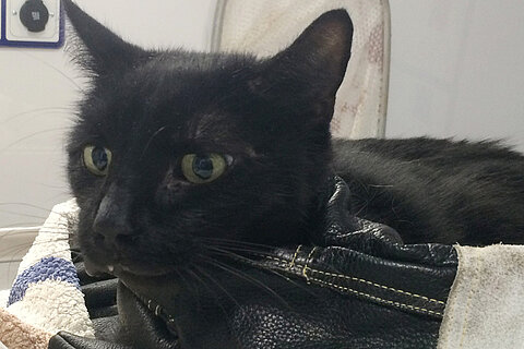 Von Christoph Stiebritz. So war es auch am 12. Juli als ich gegen 13 Uhr einen Anruf bezüglich einer verletzten Katze erhielt. Die beschriebene Katze hielt sich laut Angaben des Anrufers schon seit einigen Tagen im Keller eines Gebäudes in der Berliner Straße auf. Beim Eintreffen am Fundort begrüßten mich die Finder und zeigten mir schnell, wo sich der schwarze Kater befindet. Er versteckte sich im Eingangsbereich des Kellers unter der Treppe. Mir stieg sofort der beißende Geruch von Urin in die Nase, so dass sich mein Verdacht schnell bestätigte, dass der Kater sich schon länger im Keller aufgehalten hat. Mit Hilfe unseres Keschers war es mir nun ohne Probleme möglich, die Katze einzufangen. Auf den ersten Blick konnte ich keine gravierenden Verletzungen feststellen, jedoch sollte nun eine genauere Untersuchung auf dem Behandlungstisch in unserem Rettungsfahrzeug erfolgen. Dabei stellte sich heraus, dass das Tier, bis auf leichte Kratzer im Bereich der rechten Schläfenregion, glücklicherweise keine nennenswerten Verletzungen hatte. Aufgrund eines gezogenen Eckzahnes, schloss ich auf das fortgeschrittene Alter des Tieres. Weiterhin fiel mir auf, dass das Tier gänzlich mit Kot und Urin verschmutzt war. Gerne würden wir als Tierärzte der Tierrettung München in solchen Momenten schnellstmöglich Kontakt zu den besorgten Besitzern aufnehmen, jedoch gelingt uns dies leider nicht immer!