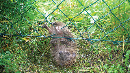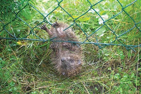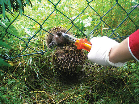Morgens klingelt das Telefon der aktion tier – tierrettung münchen e.V., eine Familie entdeckte in ihrem kleinen Garten einen Igel in misslicher Lage. Das Tierchen hatte sich abends bei seiner Wanderung durch die Gärten im Maschendrahtzaun verfangen.