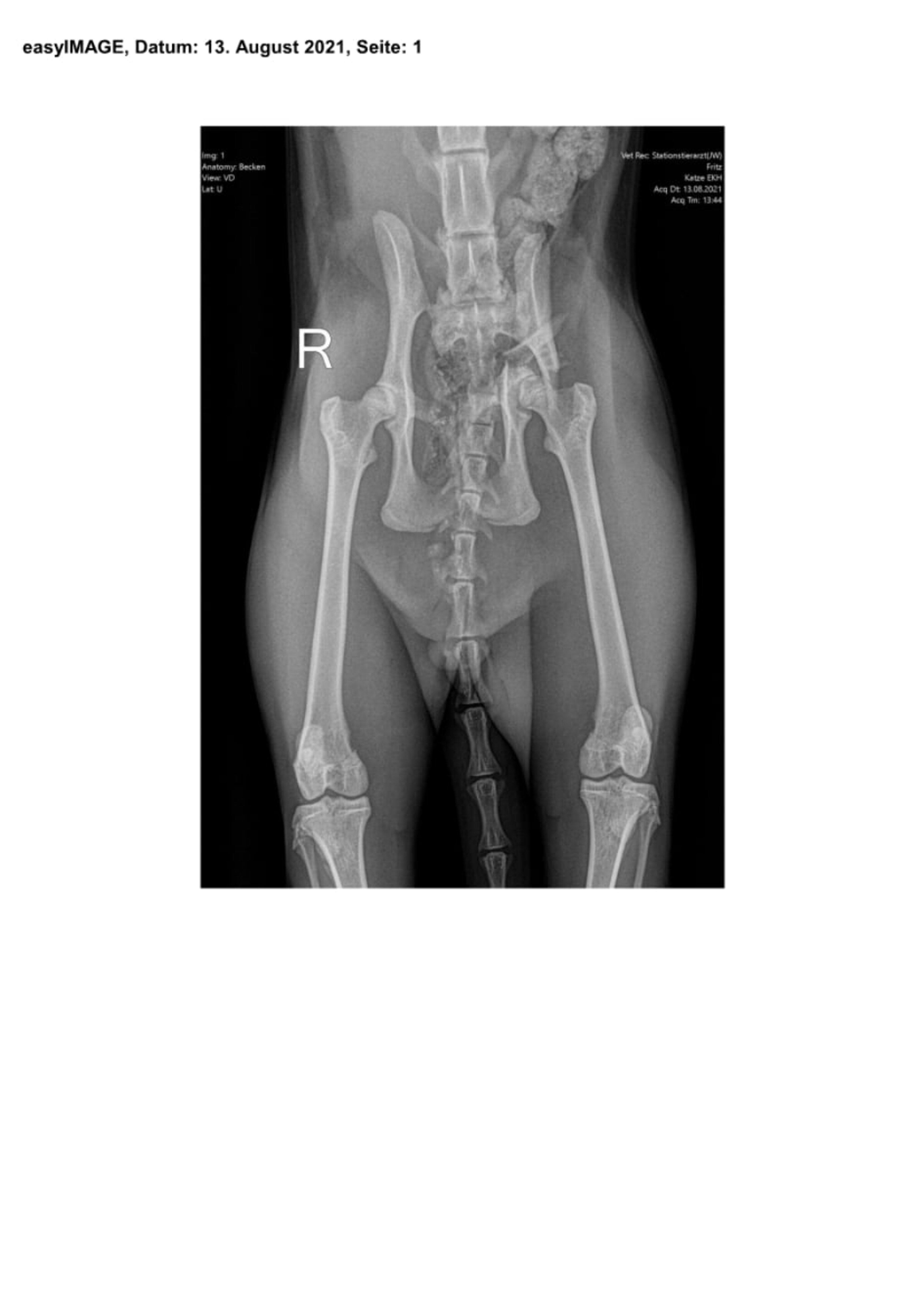 Sieben Tage nach der Einlieferung in die Klinik und drei Tage nach der Operation konnte Fritz bei gutem Allgemeinbefinden nach Hause entlassen werden.