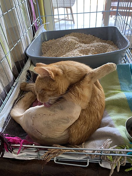 Am Abend des 8. August 2021 kam Fritz nicht nach Hause. Gegen 19 Uhr erreichte mich der Anruf von einem Tierarzt, der mir mitteilte, dass Fritz schwerverletzt bei ihm abgegeben worden sei und es ihm nicht gut gehe. Unser junger, roter Kater Fritz war vermutlich angefahren worden und konnte seine Hinterläufe nicht mehr bewegen. Wir brachten ihn sofort nach Weilheim in die Tierklinik, wo das erste Röntgenbild einen beidseitigen Bruch des Beckens zeigte. Fritz wurde stationär aufgenommen und mehrere Tage intensiv behandelt, bevor er operiert werden konnte. Nach der Entlassung aus der Klinik folgten sechs Wochen Bewegungseinschränkung in einem Käfig. Er durfte sich weder im Haus noch im Garten frei bewegen. Danach blieb ihm der Freigang in der Natur noch für weitere vier Wochen versagt. Fritz war sehr geduldig und so brav, seine Katzenfreundinnen Mona und Lisa leisteten ihm Gesellschaft. Unsere Streicheleinheiten waren unzählbar... Die Operationswunden sind sehr gut verheilt, die Verletzungen machen keine Probleme mehr. Der junge Fritz ist wieder „ganz der alte“ und erfreut sich eines wundervollen Katzenlebens!