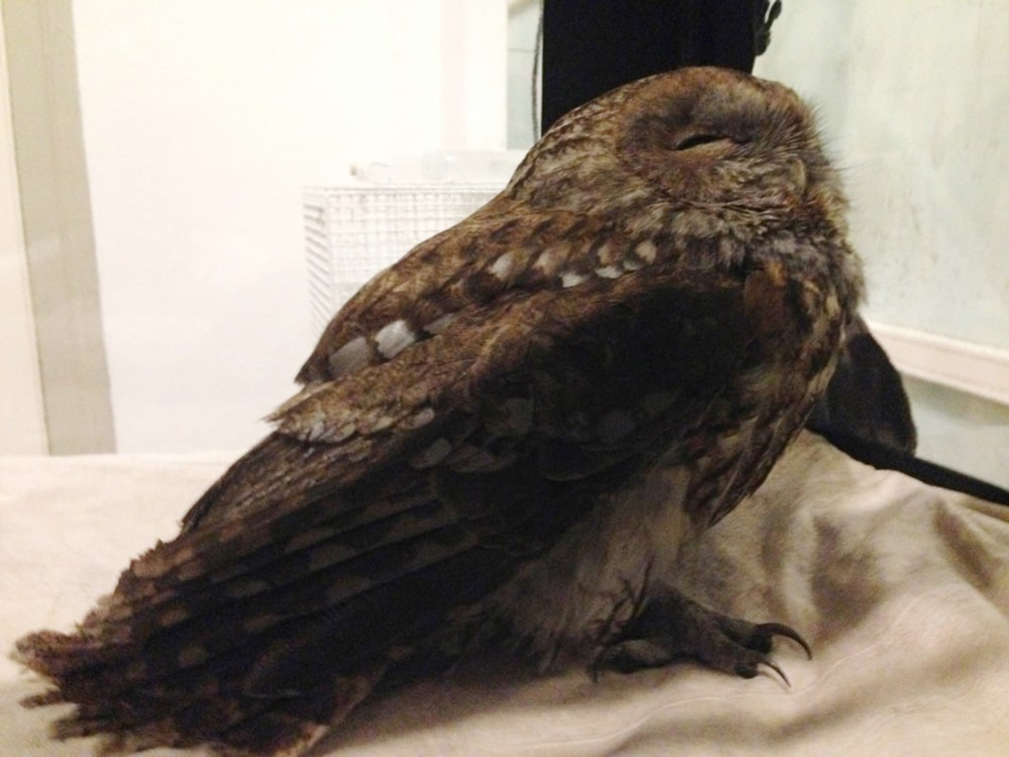 Unser Tierarzt setzte es in den Sauerstoffkäfig, um das Tier mit Sauerstoff zu stärken, und wärmte ihn weiter ganz vorsichtig. Als der Veterinär mit dem Tier in der Dienststelle der Tierrettung in der Herzogstraße eintraf, zeigte der Vogel bereits wieder ein deutlich muntereres Verhalten und konnte sich auch wieder bewegen. Der Kauz bekam noch eine Infusion und ein Schmerzmittel und wurde die Nacht über überwacht. Bereits am nächsten Morgen wollte der Waldkauz seine Retter wieder verlassen und fliehen. Zur weiteren Abklärung brachte die Tierrettung den Kauz in die Klinik für Vögel, Reptilien und Zierfische der LMU, wo er nun weiter medizinisch versorgt wird.