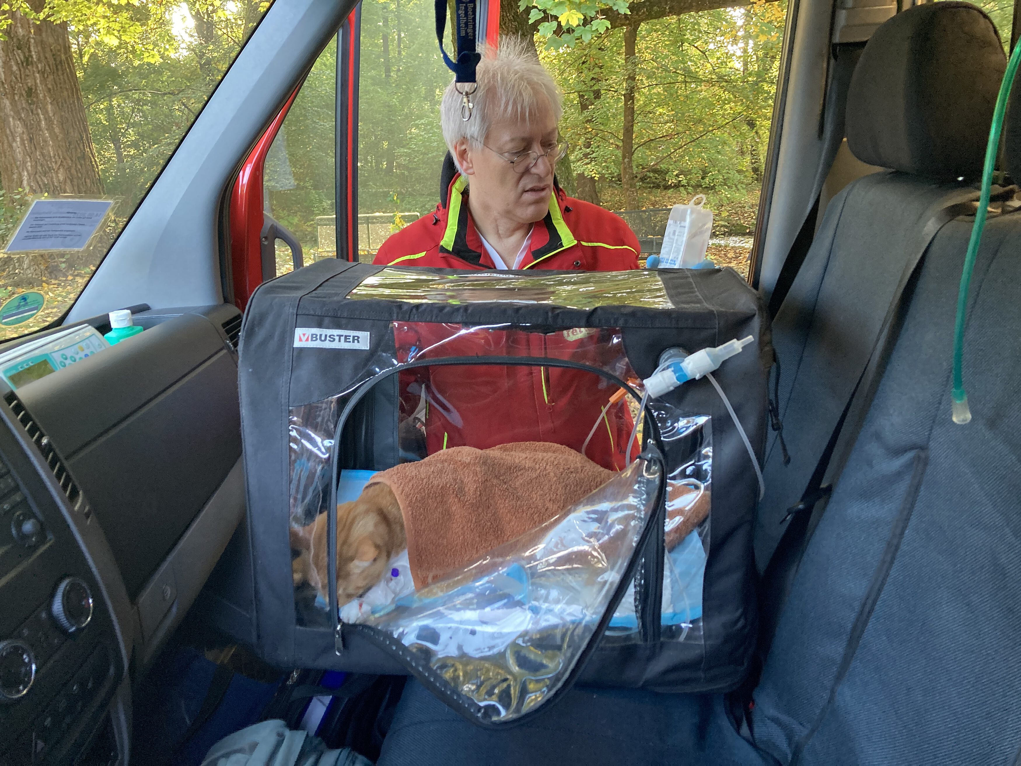 Am 14. Oktober 2025, gleich zu Beginn der Frühschicht um 7:40 Uhr, wurde der Hausmeister eines Wohnblockkomplexes in der Helsinkistraße alarmiert: Im Innenhof lag eine Katze, die vermutlich vergiftet worden war. Die Katze atmete noch und zeigte erste Lebenszeichen, bewegte sich jedoch nicht. Bei Annahme des Einsatzes wurde der diensthabende Tierarzt, Dr. med. vet. Gábor Horváth, gebeten, dafür zu sorgen, dass die Katze bis zu seiner Ankunft nicht weiter auskühlt. Er empfahl, das Tier mit etwas Isolierendem zu umwickeln. Der Finder der Katze hatte sie bereits in seine Jacke eingewickelt. Währenddessen zeigte die Katze deutliche Reaktionen auf den Kontakt, fauchte und versuchte sich zu wehren, war jedoch nicht gehfähig.