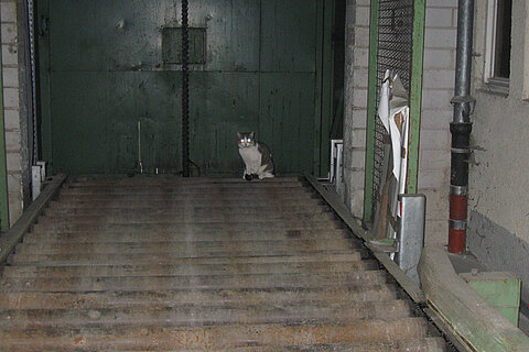 Es ist ein eisiger Novembermorgen, an dem die Angestellten der Spaten- Brauerei wie gewohnt um kurz nach sechs Uhr ihren Dienst antreten. Sie erwarten einen ganz normalen Tag. Mit einem rechnen sie aber nicht: Irgendwo aus der Ferne an ihrem Arbeitsplatz ein klägliches Miauen zu hören. Sie trauen ihren Ohren kaum: Eine Katze – ausgerechnet in einer Brauerei? Die Angestellten beginnen sofort nach dem Tier zu suchen, sie durchkämmen jeden Winkel und werden schließlich am Lastenaufzug fündig. Es ist ein grausames Bild, das sich ihnen zeigt: Die Katze liegt genau am hinteren Ende eines Förderbandes, das direkt zu besagtem Aufzug führt. Dieses Förderband besteht aus Walzen, die hintereinander angeordnet liegen und an ihrem Ende geht es fünf Meter in die Tiefe und genau in die beiden letzten Rollen des Förderbandes hatte sich das Tier eine Vorder- und eine Hinterpfote eingeklemmt. Die Männer wollen das Tier befreien, ziehen und zerren an den Rollen und an den Pfoten, wollen die Katze aber natürlich auch nicht verletzen. Irgendwann, nach großen Mühen, gelingt es ihnen, wenigstens die linke Vorderpfote frei zu bekommen. Doch die Katze dankt ihnen das nicht, sondern beißt vor Schreck kräftig einen ihrer Retter in die Hand. Die Brauereiangestellten sind ratlos. Ihr Schichtleiter Hans Pfeifer ist es schließlich, der zum Telefon greift und die aktion tier-tierrettung münchen alarmiert. Und er ist es auch, der der Bergung der Katze noch vor der eigentlichen Arbeit in der Brauerei absolute Priorität einräumt.