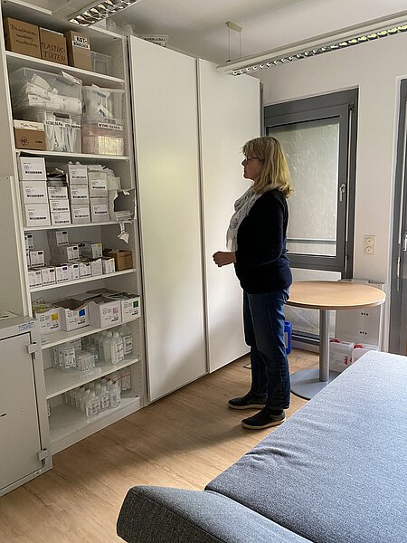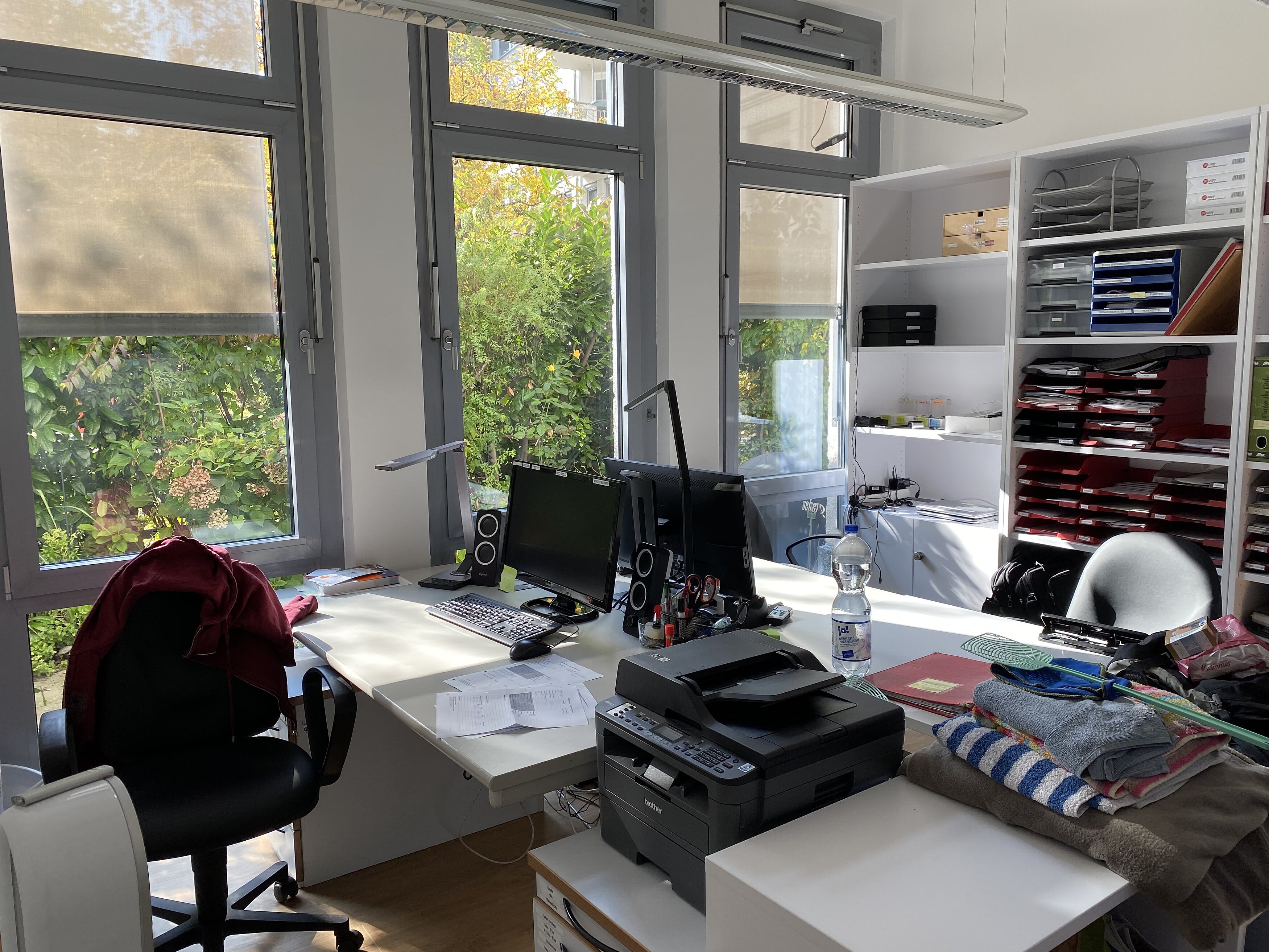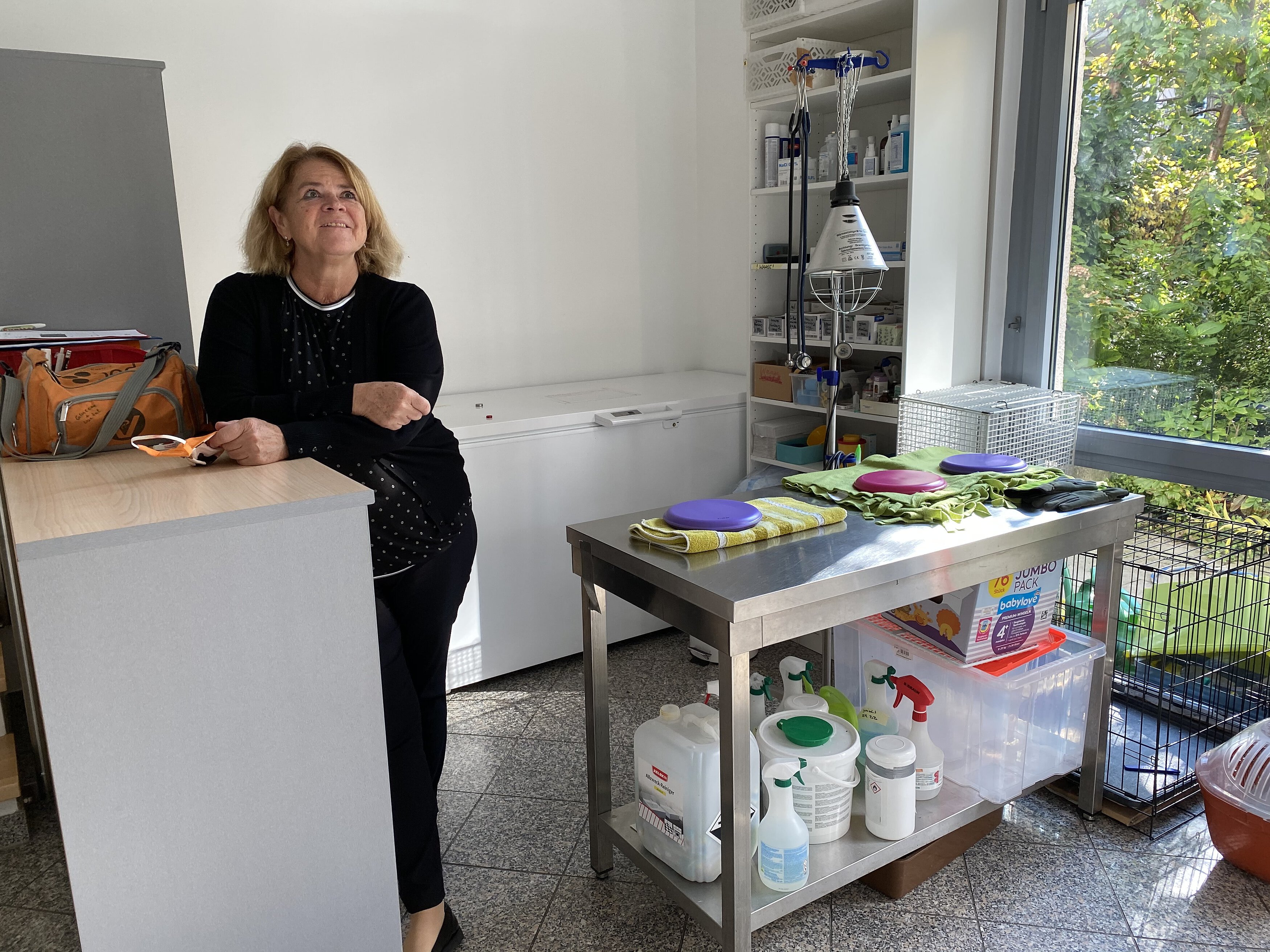 Als vor einigen Monaten die Kündigung der bisherigen Räumlichkeiten kam, stellte sich die Frage, wo man nun Räumlichkeiten findet, die sich eignen, bezahlbar sind, Parkplätze für die Ambulanzwagen haben und auch für Patienten und ihre Besitzer gut zu erreichen sind. Das Glück spielte mit, und der Umzug konnte nicht nur innerhalb der Straße erfolgen, auch alle Telefonnummern konnten bleiben – die Räume waren in demselben Haus, wo sich in der ersten Etage sowieso die Verwaltung der Tierrettung München mit Dr. Evelyne Menges und Evi Plötz befindet. Besser konnte es nicht kommen. Die fünf großen Räume sind lichtdurchflutet, und einen Sonnenplatz zur Entspannung gibt es auch auf der kleinen zugewachsenen Terrasse. In den großzügigen Räumen gibt es eine Apotheke, einen Ruheraum und Büroarbeitsplätze sowie Besprechungszimmer, natürlich eine voll eingerichtete Küche, separat Waschmaschine und Trockner, Toiletten und eine Dusche. Es ist alles vorhanden, um einen stressigen Arbeitstag angenehmer zu machen.