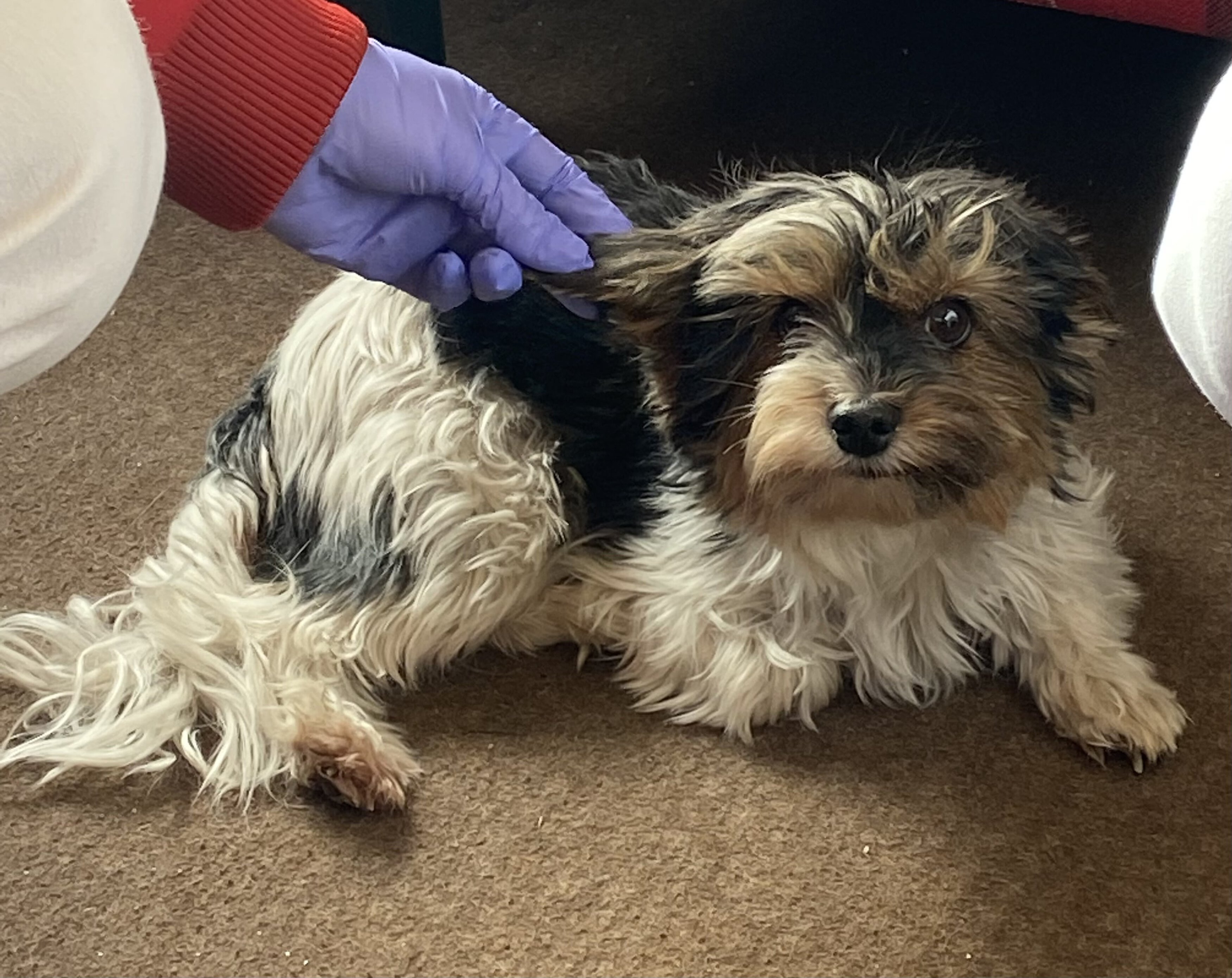 Wir untersuchten am Samstagmittag den kleinen wuscheligen Rikko, einen 4-jährigen Biewer Terrier. Er hatte vormittags plötzlich mehrfach erbrochen und mehrfach blutigen Durchfall abgesetzt. Er war sehr matt und zeigte einen Kreislaufschock mit Untertemperatur. Wir haben Rikko zunächst mit Infusionen stabilisiert und zusätzlich mit Schmerzmitteln und Antibrechmittel versorgt. Wir hatten keinen Hinweis auf eine Vergiftung, eine akute Entzündung oder Fremdkörper. Auf der Intensivstation der Medizinischen Tierklinik wurde er weiterbehandelt. Diagnose: Verdacht auf AHDS (Akutes hämorrhagisches Durchfall-Syndrom).
