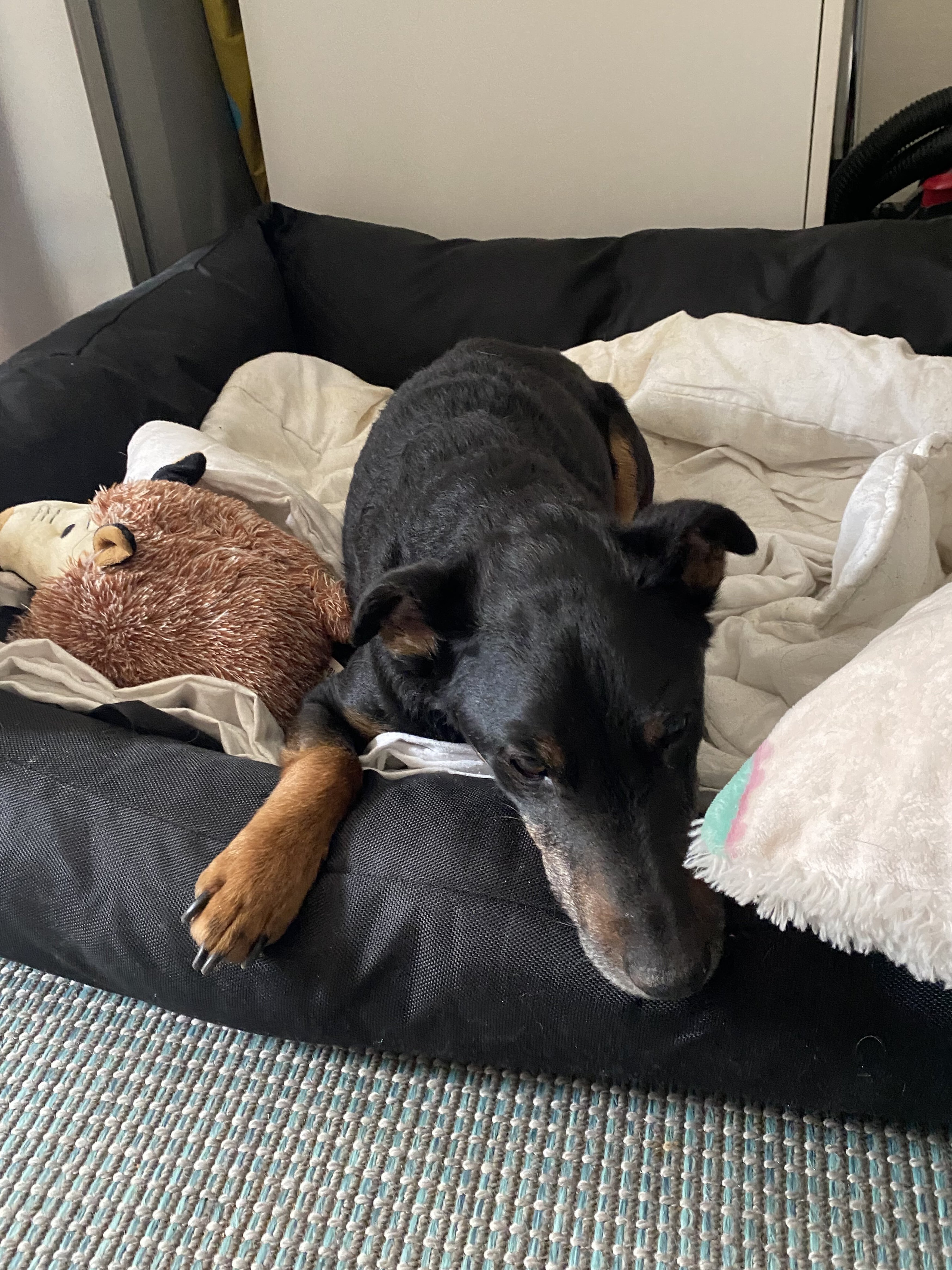Flocki hatte eine Woche lang Durchfall, welcher allerdings mit Probiotika wieder verschwand. Dann wurde er etwas weicher, und am Tag unseres Eintreffens hatte er wieder grünlichen Durchfall und einmal erbrochen und war seiner Besitzerin hauptsächlich viel zu ruhig. Mit blässlichen Schleimhäuten und leicht erniedrigter Körpertemperatur, welche auf einen schlechten Kreislauf oder Blutarmut hindeuten können, waren diese Befunde schwerwiegender als der Durchfall zu dem wir gerufen wurden. Mit bekannten Herz- und Nierenproblemen und einem Alter von 14 Jahren, gab es für die Symptome mehrere Möglichkeiten, die bei Verschlechterung sogar einen Klinikaufenthalt zwingend machen würden. Mit Beginn der Therapie muss Flockis Besitzerin gut auf die Symptome achten, um im Zweifelsfall zeitnah in der Klinik vorstellig zu werden.
