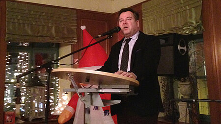 Festlich geschmückt zeigten sich die Tische im Hofbräukeller an diesem 12. Dezember – Tannenzweige, Weihnachtsschmuck und süße Leckereien für Mensch und Tier waren dort zu finden. Denn nicht nur zweibeinige Mitglieder waren zu dieser Feier geladen, sondern auch so manch ein Hund, der sich ebenfalls willkommen fühlen sollte. Rund 250 Gäste hatten sich im Großen Saal des Hofbräukellers eingefunden, darunter auch zahlreiche Ehrengäste. So überbrachte Tierfreund Josef Schmid, CSU-Stadtrat und Oberbürgermeisterkandidat, die Grüße der Stadt. Josef Schmid betonte in seiner Rede, wie wichtig das Verhältnis von Mensch und Tier ist. Als kleiner Junge ist er von einem Baum gefallen. Es war der Hund der Eltern, der sie durch lautes Bellen auf dieses kleine Missgeschick aufmerksam gemacht hat. So hat Josef Schmid schon als Kind die enge Beziehung eines Hundes zum Menschen als sehr positiv erfahren. Auch Professor Dr. Rudolf Hoffmann und Dr. Markus Baur von der Reptilienauffangstation waren gekommen, ebenso wie Wolfgang Leitner, Vorsitzender des Arbeitskreises Tierschutz von Bündnis 90/ Die Grünen, Kurt Perlinger, Vorsitzender des Tierschutzvereins München, Christiane Vidacovich, Vorsitzende des Vereins Streichelbande, Max Strasser, Geschäftsführer der Findelkind- Stiftung, Alexandra Gassmann, Vorsitzende des Bayer ischen Landesverbands kinderreicher Familien, der Herzspezialist Dr. Hans Theiss und natürlich Chiara Mia, die charmante Königspudeldame von Dr. Evelyne Menges, die die Rolle der Gastgeberin für alle Vierbeiner an diesem Abend übernommen hatte. Gereicht wurden übrigens nur vegetarische Speisen – eine Entscheidung, mit der sich die Vizepräsidentin Dr. Evelyne Menges ganz klar gegen jede Art von Massentierhaltung aussprach. Bereits zur Einstimmung überzeugten die Münchner Vorstadt Musikanten unter der Leitung von Winnie Spannagl mit echter bayerischer Weihnachts-Volksmusik. Wer in der Hektik des Alltags bis zu diesem Moment vergessen hatte, dass das Fest der Liebe auch ein Fest des Innehaltens ist, wurde spätestens mit diesen Weisen daran erinnert. Als Anja Staffehl, eine Münchner Erzählkünstlerin, ihr tierisches Märchen vortrug, wurde es mucksmäuschenstill im Saal. Auch der Präsident der Tierrettung, Professor Dr. Henning Wiesner, sorgte auf seine Weise für unterhaltsame und lehrreiche Momente an diesem Abend. So las er aus seinen Büchern (wie z.B. „Wenn Hunde sprechen könnten“, „Müssen Tiere Zähne putzen“), sehr schöne Geschichten vor. Den besonderen Höhepunkt im Programm lieferte aber der bekannte Mundartdichter, Philosoph und Tierfreund Prof. Dr. Helmut Zöpfl, der auch die Münchner Turmschreiber gegründet hatte. Seine Weihnachtsgeschichten und Gedichte rund um Mensch und Tier zauberten an diesem Abend ein Lächeln auf die Gesichter der Gäste und brachten auch so dann und wann den einen oder anderen zum Nachdenken. Alles in allem also eine Weihnachtsfeier, die besinnlicher nicht hätte sein können, aber bei der auch der Humor nicht zu kurz kam. Die Mitglieder und Gäste der Tierrettung haben den Abend jedenfalls sichtlich genossen. Danke, Frau Dr. Menges!