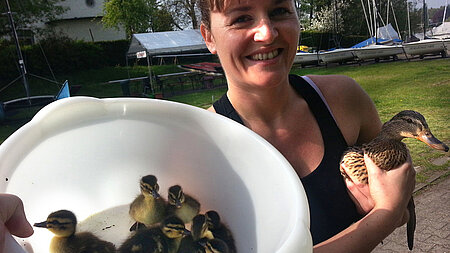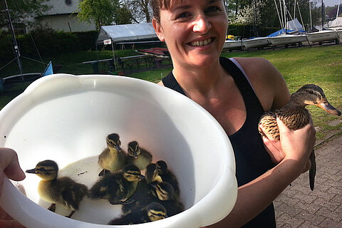 Von Regina Welk. Eine Wildente brütet nur einmal im Jahr, und es können zwischen sieben bis 16 Eier sein. Enteneier (und die anderer Vögel) sind ein beliebtes Futter für Eichhörnchen und Krähen sowie auch Katzen. Auch Füchse rauben gern Entenoder Schwanennester aus. Deshalb suchen sich kluge Entenmütter besonders sichere Plätze für ihre Nester. Sie nisten besonders gern z.B. in Balkonkästen, in Kellerschächten, in Garagen oder in Büschen, wo sie nicht entdeckt werden können. Sogar ein Polizeimotorrad, welches in einer Garage überwinterte, war ein gemütliches und sicheres Plätzchen. Für die Brutzeit sind sie dort vorübergehend geschützt, doch dann geht es gefährlich weiter – denn die Küken müssen das mehr oder weniger weit entfernte Gewässer erreichen.