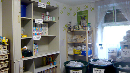 Um diese Beziehung zwischen Mensch und Tier auch in schwierigen Lebensphasen wie Krankheit, Altersarmut, Obdachlosigkeit oder Hartz IV zu erhalten, wurde im Oktober 2006 die Tiertafel Deutschland e.V. gegründet. Inzwischen gibt es deutschlandweit 24 Ausgabestellen, die alle ehrenamtlich betrieben werden und sich – wie der gesamte Verein – ausschließlich durch Spenden (Sach-/Futter- und Geldspenden) von Unternehmen, Geschäfts- und Privatleuten finanzieren. In Bayern sind es gerade einmal 3 Ausgabestellen; eine davon in München. Hier in der Implerstraße 1 in Sendling unterstützen die ehrenamtlichen Helfer um Leiterin Andrea de Mello alle 14 Tage mittlerweile rund 200 nachweisbar bedürftige Münchnerinnen und Münchner. Weit über 500 sind in der Kartei. Diese Menschen können sich dann Tierfutter, Leckerlis und Zubehör für ihre Tiere (Hunde, Katzen, Kaninchen, Vögel etc.) abholen oder aber auch nur zu einem Gespräch kommen. „Mit jeder Ausgabe kommen zwischen 7 und 10 Tierhalter zu uns, die sich neu anmelden möchten, weil sie ihr Tier nicht mehr allein versorgen können“, so Andrea de Mello. „Helfen können wir aber leider nicht allen.“ Neben der nachzuweisenden Bedürftigkeit können nur Menschen aufgenommen werden, die ihr Tier schon vor der finanziellen Notlage bei sich hatten. Neuanschaffungen, gleich ob geschenkte, gefundene Tiere oder Welpen gehören nicht dazu. „Wir wollen helfen, ein über Jahre liebgewonnenes Tier nicht abgeben zu müssen, nur weil die Lebenssituation schwierig geworden ist. Denn gerade dann ist ein treuer Freund das Wichtigste“ beschreibt Andrea de Mello den Grundgedanken der Tiertafel. Dafür ist eine ganze Menge Futter notwendig. Die Ausgabestelle München benötigt mittlerweile über 1.200 kg Tierfutter im Monat, um die rund 350 registrierten Fellnasen und gefiederten Freunde zu versorgen. „Schön wäre es, wenn das Futter in den Regalen einmal für 2 Monate reichen würde und wir nicht immer wieder von einem Ausgabe-Samstag zum nächsten mit großem Aufwand das nötige Futter beschaffen müssten. 5 oder 10 Euro im Monat als dauerhafte Unterstützung, damit spezielles Nassfutter besorgt werden kann, wären schon eine unglaubliche Erleichterung für uns.“ Aber mit Futter allein ist es leider oft nicht getan. Viele der Tiertafel- Kunden sind alt und krank und das sind mit ihnen über die Jahre auch ihre tierischen Begleiter geworden. „Für viele unserer Tiere benötigen wir spezielles Futter, das leider oft nur gespendet wird, wenn ein Tier verstorben ist und sein Halter trotz Trauer an die Tiertafel denkt. Ein großes Problem für uns sind Tierarztkosten. Daher geht jeder gespendete Euro 1:1 in die Bezuschussung von Tierarztrechnungen. Wer sich mit der Bitte um Futterunterstützung an uns wendet, für den reißt schon eine Impfung ein schmerzhaftes Loch in den Geldbeutel. Wir würden gerne mehr in dieser Richtung helfen, können aber nur das weitergeben, was großzügige Menschen uns zuwenden.“