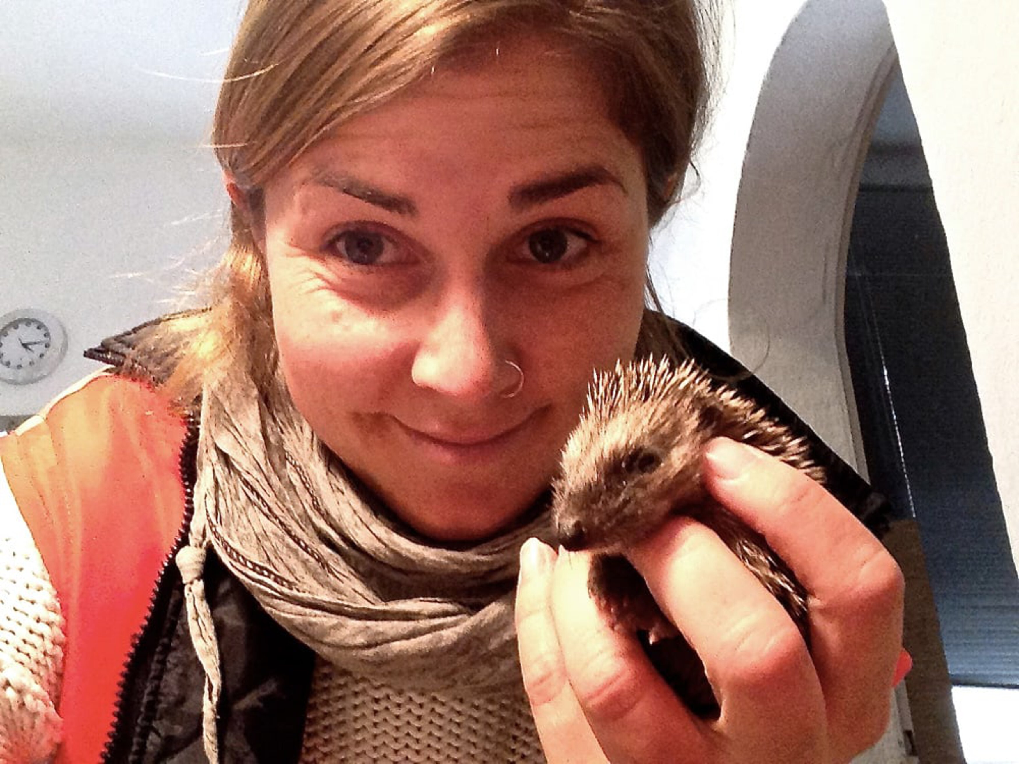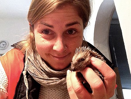 Neben einem jungen Eichhörnchen wartet ein bereits untersuchtes (und von Parasiten befreites) Igeljungtier auf mich, mit einem viel zu geringen Gewicht von 200 Gramm. Beide Patienten werden bereits mit einer Rotlichtlampe gewärmt, und der kleine „Igel-Nimmersatt“ verlangt umgehend nach mehr Katzenfutter. Später an diesem Tag fahre ich die zwei Schützlinge weiter in das Tierheim Riem, wo es zusammen mit vielen anderen kleinen Igeln behütet und schließlich wieder in die Freiheit entlassen wird.