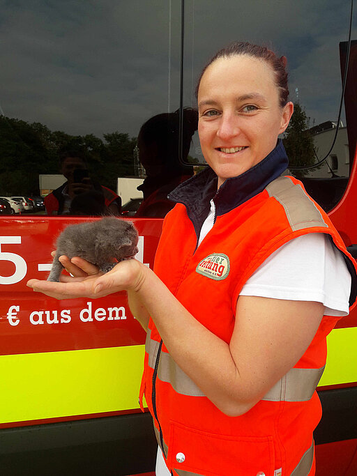 Melanie Onderscheka entschied sich nach ihrem Master in Biologie, noch ein Tiermedizinstudium anzuschließen, welches sie im März 2025 erfolgreich beendete. Bereits während dieser Zeit sammelte sie als studentische Hilfskraft im Notdienst an der Uniklinik erste Erfahrungen in der Notfallversorgung von Haustieren. Da sie durch die enge Zusammenarbeit der Klinik mit der Tierrettung schon oft Kontakt mit dem Team hatte, entschied sie sich nach ihrem Studium dazu, parallel zu ihrer Doktorarbeit bei der Tierrettung anzufangen. „Bei der Tierrettung finde ich es besonders spannend, dass die Dienste so abwechslungsreich sind und kein Tag wie der andere ist. Außerdem ist es sehr bereichernd, Neues über einheimische Wildtiere und deren medizinische Erstversorgung zu lernen."